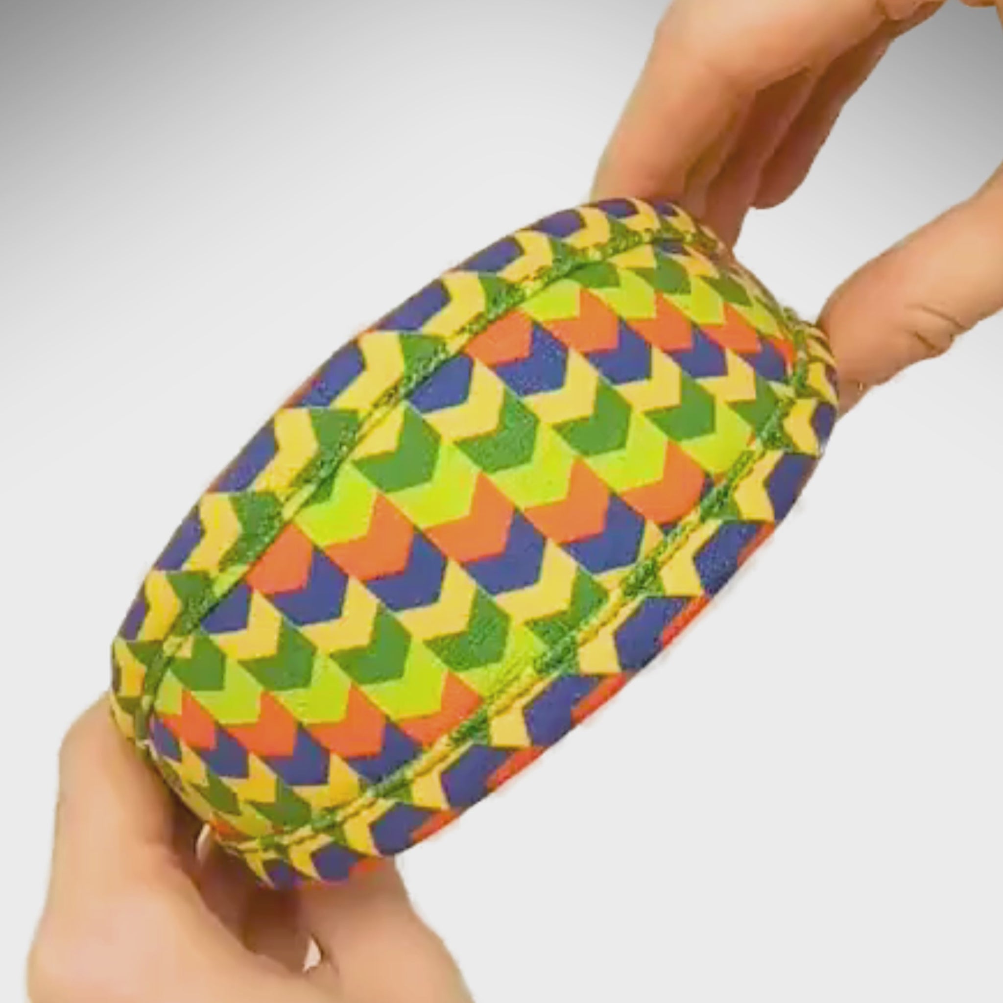 This designer dog collar is a bright contrasting chevron pattern called "Acid Drop" featuring striking shades of Dark blue, Hunter Green, Acid Green, Mustard yellow and Scarlet.
